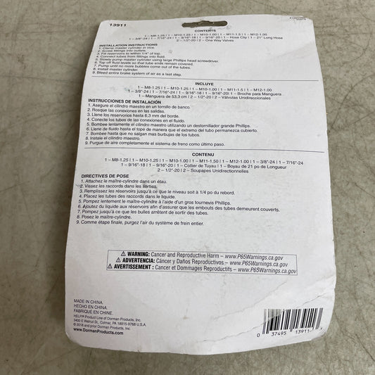 Dorman 13911 Master Cylinder Bleeder Kit Universal w/ Metric