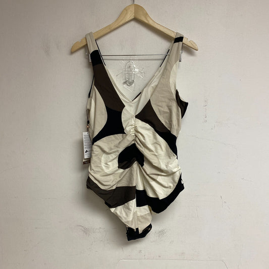 Calia Women's Ruched One Piece Swim Suit Wavy Blocks Neutral WSA23114PRT New!