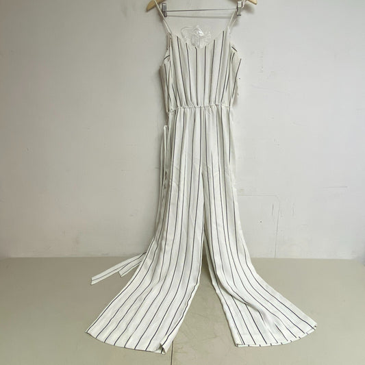 Bar III Women's Dressy Jumpsuit Striped Wide Leg Strapped Black White Size 12