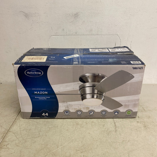 Harbor Breeze Mazon Brushed Nickel Finish Ceiling Fan 44 inch Model # 0807421
