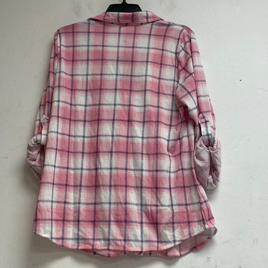 White Mark oakley plaid women's 3/4 sleeve button-down shirt Size L pink/White