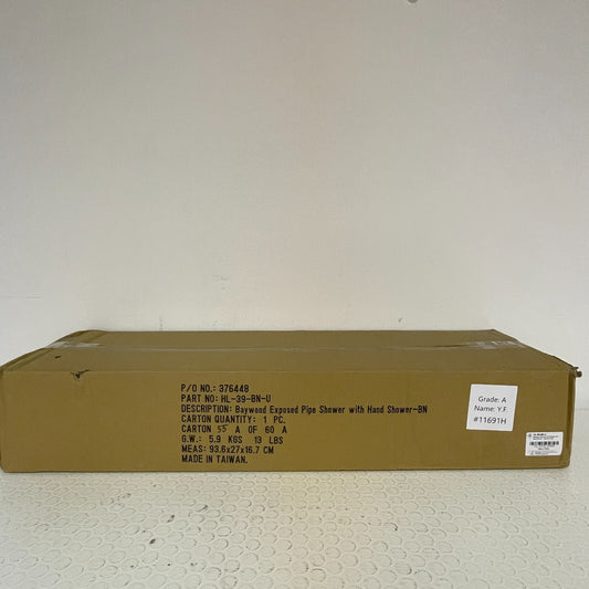 Signature Hardware Baywood Exposed‑Pipe Shower with Hand‑Shower Brushed Nickel